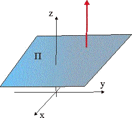 - А = 0, В = 0; (С ≠ 0, D ≠ 0).Уравнение плоскости имеет вид Cz + D = 0. Нормальный вектор