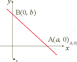 Такое название связано с геометрическим смыслом чисел а, b и с. Найдём координаты точек пересечения с координатными осями прямой плоскости Прямая пересекает ось Ох в точке А(а, 0), ось Оу в точке В(0, b). Плоскость пересекает ось Ох в точке А(а, 0, 0), ось Оу в точке В(0, b, 0), ось Оz в точке С(0, 0, с). ПрямаяПлоскость