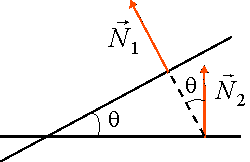 Угол θ между нормальными векторами двух прямых равен одному из углов, образованными этими прямыми (как углы с