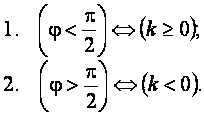 - Угол наклона прямой к оси Ох острый тогда и только тогда, когда её угловой коэффициент положительный.
