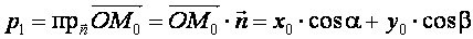 d = PM1 = | p1 - p | = | x0 cos α + y0 cos β - p |,