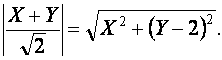 По условию задачи исмеем d1 = d2, откуда имеем После упрощения получим X2 + Y2 - 2 X Y - 8 Y + 8 = 0. Ниже приведён график динной линии СМОТРИМ ДАЛЬШЕ »