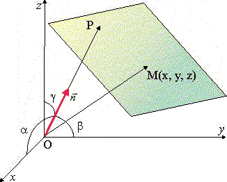 - а) длина р перпендикуляра ОР, опущенного из начала координат на плоскость;