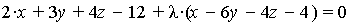 - Найдём уравнение плоскости из этого пучка, не содержащее одной из остальных переменных
