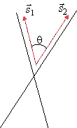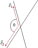 Угол Θ между направляющими векторами двух прямых равен одному из углов между этими прямыми (Рис. а), б)). Это утверждение справедливо и для скрещивающихся прямых, так как углом между скрещивающимися прямыми считается угол между прямыми, им соответственно параллельными и лежащими в одной плоскости. Пусть даны прямые l1 и l2 с направляющими векторами и ; тогда один из углов между этими прямыми найдётся по формуле