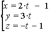 1) подставить в уравнение плоскости вместо переменных х, у и z их выражения через параметр t в в уравнениях прямой;