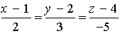 Задача 1. Укажите координаты направляющего вектора и точки М0 указанных прямых Выбери ответ (1, 2, 3) (1, 2, 4) (0, - 3, 1) (0, 3, 5) (2, 3, - 5) (2, 0, - 1) Выбери ответ (1, 2, 3) (1, 2, 4) (0, - 3, 1) (0, 3, 5) (2, 3, - 5) (2, 0, - 1) Выбери ответ (1, 2, 3) (1, 2, 4) (0, - 3, 1) (0, 3, 5) (2, 3, - 5) (2, 0, - 1) M0(x0, y0, z0) Выбери ответ (1, 2, 3) (1, 2, 4) (0, - 3, 1) (0, 3, 5) (2, 3, - 5) (2, 0, - 1) Выбери ответ (1, 2, 3) (1, 2, 4) (0, - 3, 1) (0, 3, 5) (2, 3, - 5) (2, 0, - 1) Выбери ответ (1, 2, 3) (1, 2, 4) (0, - 3, 1) (0, 3, 5) (2, 3, - 5) (2, 0, - 1) Задача 2. Укажите каноническое уравнение прямой, проходящей через точку А (3, 2, - 1) параллельно вектору . НА ГЛАВНУЮ СТРАНИЦУ »»