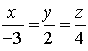 Задача 1. Напишите уравнения прямой, проходящей через точку М (- 3, 2, 4) и начало координат.