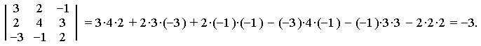 Правило вычисления определителя третьего порядка легко запоминается с помощью схем