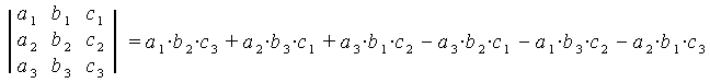 a1b2c3 + a2b3c1 + a3b1c2 - a3b2c1 - a1b3c2 - a2b1c3