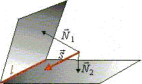При помощи векторного умножения можно найти направляющий вектор прямой, заданной общими уравнениями. Пусть прямая l задана общими уравнениями