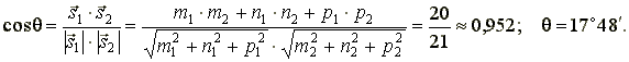 Пример. Найдите угол между прямой Найдём направляющие векторы прямых , ![]() ![]() |