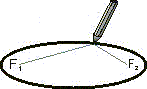 Полученная линия есть эллипс, так как сумма расстояний любой её точки М до точек закрепления нитки есть величина постоянная, равная длине нитки.