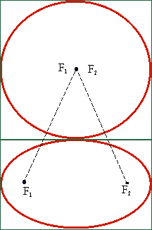 - 1) ось абсцисс прошла через фокусы F1 и F2,