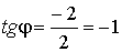 - Одному и тому же тангенсу соответствуют два угла в пределах от 0 до 2π. В частности, tg φ = - 1 соответствуют углы