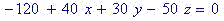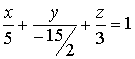 .Р е ш е н и е. Перенесём - 15 в правую часть и почленно разделим на это число правую и левую части данного уравнения плоскости 3·x − 2·y + 5·z = 15, ↔