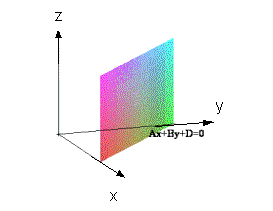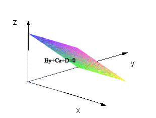 - B·y + C·z + D = 0 - плоскость параллельна оси OX.