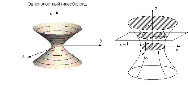 .Если рассечь поверхность плоскостями z = h ( | z | ≥ c ), получим эллипсы с уравнениями