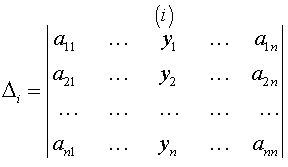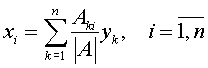 Будем рассмотривать соотношение (3.9) как систему n уравнений относительно n неизвестных xi, i = 1, 2, …, n. Система (3.9) имеет единственное решение, если определитель
