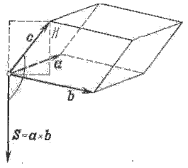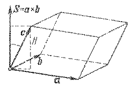 Чтобы истолковать полученный результат, мы построим на некторах a, b, c параллелепипед, основанием которого будем считать параллелограмм со сторонами a, b. Площадь этого основания такова: