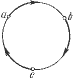 Чтобы сформулировать получающийся закон переместительности, отметим на окружности три точки, которые обозначим, как множители, буквами a, b, c . Будем считать положительным обход окружности в направлении аbс. Мы видим (4.22), что при перестановке множителей, не нарушающей их кругового порядка, векторно-скалярное произведение не меняется; при перестановке же множителей, нарушающей круговой порядок, векторно-скалярное произведение меняет только свой знак.
