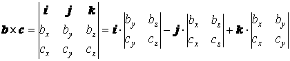 Как видно, векторное произведение представляется определителем третьего порядка, в первой строчке которого проставляются