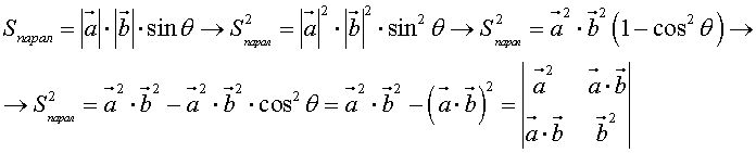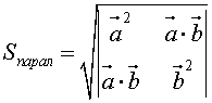 Формуле вычисления площади параллелограмма можно придать более простой вид через скалярное произведение: