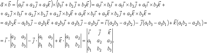 Тогда, согласно выражению векторного произведения в координатной форме, получаем