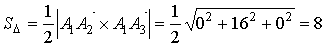 Площадь треугольника найдётся как половина длины получившегося вектора (половина площади параллелограмма)