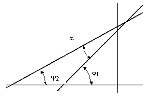.Углы со взаимно перпендикулярными сторонами равны, поэтому угол между прямыми равен углу между векторами N1, N2.