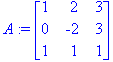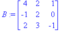 <with(linalg):A := matrix(3,3,[1,2,3,0,-2,3,1,1,1]);B := matrix([[4,2,1],[-1,2,0],[2,3,-1]]);