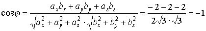 > with(linalg):angle( vector([1,-1,1]), vector([-2,2,-2]) );