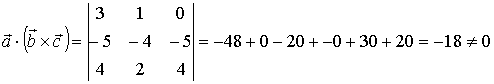 Так как смешанное произведение этих векторов не равно нулю, то векторы a, b