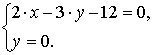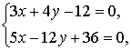 или 5·x − 12·y + 36 = 0. Решая систему уравнений сторон АВ и ВС