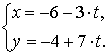 Составить параметрическое уравнение прямой, проходящей через точку А(− 6, − 4) и имеющий угловой коэффициент