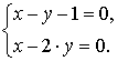 x − y − 1 = 0, x − 2·y = 0 (15.9)