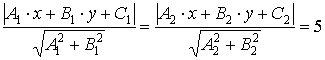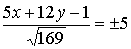 Для верхнего знака получим уравнение прямой 5·х + 12·у − 66 = 0, для нижнего знака получим уравнение прямой