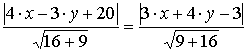 Найти точки, отстоящие от прямых 4·х − 3·у + 20 = 0 и 3·х + 4·у − 3 = 0 на расстоянии 5.