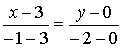 Р е ш е н и е. Воспользовавшись уравнением прямой, проходящей через две точки,