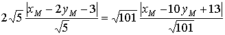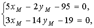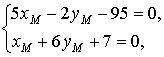 откуда следуют два соотношения 3·xM − 14·yM − 19 = 0, xM + 6·yM + 7 = 0.