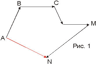 Рассмотрим ломаную линию, составленную из векторов, которые «одинаково ориентированы по её контуру», т. е. Расположены так, что начало каждого следующего звена совпадает с концом предыдущего. Вектор AN, идущий из начала первого вектора к концу последнего, будем называть вектором замыкающим ломаную. |