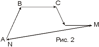 Если ломаная — замкнутая (рис. 2), то замыкающим вектором считается нуль – вектором. Вектор AN , замыкающий ломаную АВС…N, называется суммой векторов, составляющих ломаную, что записывается так: