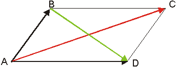 В параллелограмме ABCD вектора – диагональ BD есть разность векторов AD и АВ, а вектора – диагональ АС — сумма этих векторов.