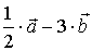 Построение на рис. 2: 1. Приведём данные векторы к общему началу О.2. «Растянем» вектор в (т. е. Сожмём в два раза), получим вектор .3. Растянем вектор в три раза, получим вектор ![]() 4. Построим вектор , противоположный вектору .5. Сложим векторы и по правилу параллелограмма; получим вектор , равный вектору