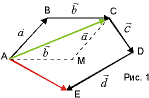(рис. 1).Построим на векторах и параллелограмм АВСМ, в котором , . По правилу сложения векторов , однако, . Поэтому , но это означает, что .