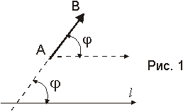 Углом φ вектора с осью называется геометрический угол (φ ∈ [0; π] ) между двумя векторами тех же направлений, имеющих общее начало (рис. 1).