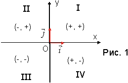 Следует отметить, что если точка лежит на оси Ох, то её ордината равна нулю. Если точка лежит на оси Оу, то её абсцисса равна нулю. Если учесть порядок в паре (х, у), то в каждой координатной четверти знаки абсциссы и ординаты будут такими, как указано на рис. 1. Точки называются симметричными относительно прямой, если находятся