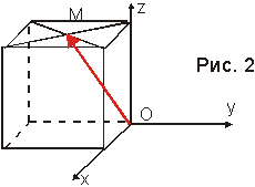 Задача. На рис. 2 изображён куб с ребром, равным единице, М — центр верхнего основания куба. Найдите координаты вектора .
