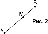 в правой части равенства есть конец отрезка АВ. Конец вектора в левой части равенства и начало вектора в правой части равенства есть точка деления отрезка. Если точка М находится внутри отрезка АВ, то говорят, что она делит отрезок внутренним образом (рис. 2). Векторы AM и MB направлены одинаковы и в случае внутреннего деления отрезка имеем λ > 0. |