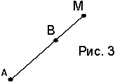 Если же точка М находится вне отрезка, то говорят, что она делит отрезок внешним образом (рис. 3). Векторы AM и MB направлены противоположно и в случае внешнего деления отрезка λ < 0. |